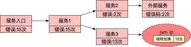 说明本次请求是由于下游jvm的线程池满导致的,但是一次调用并不能说明该服务不可用的根本原因,需要分析整体的错误情况,那就需要对图数据做实时聚合。