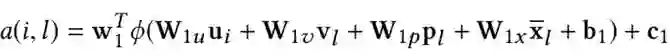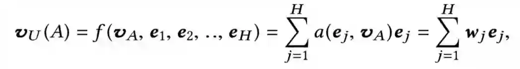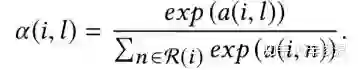 对于每个历史行为ht,当前候选广告ea,通过softmax求出两者的权重。注意这里不是直接向量点击,而是引入了矩阵W,可以认为是简单的一层全连接网络。