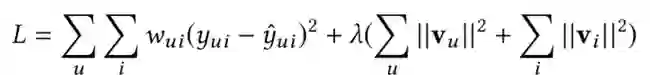 (1)将用户u对物品i的打分分解成用户的隐向量vu,以及物品的隐向量vi