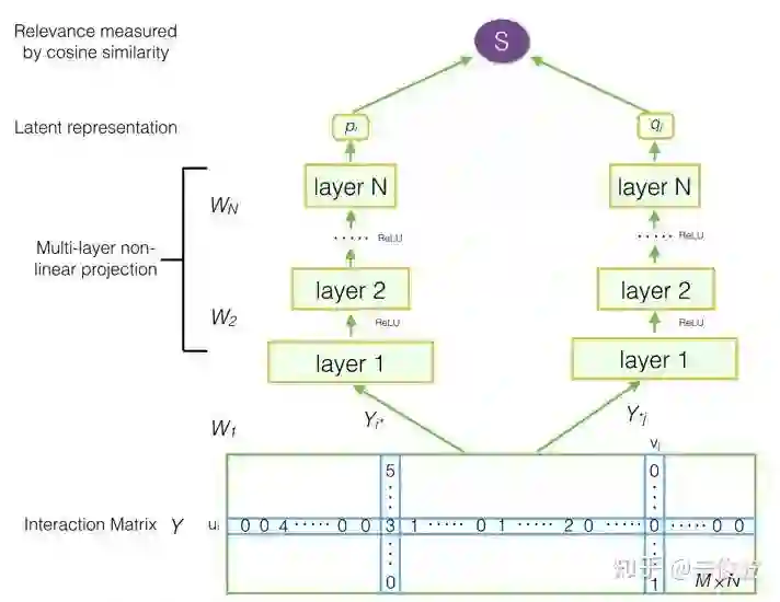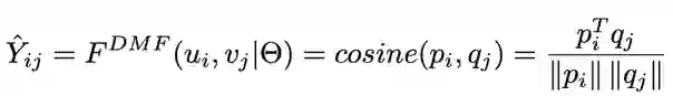 DMF模型也就是深度矩阵分解模型,在传统的MF中增加了MLP网络,整个网络框架如图3.3所示。