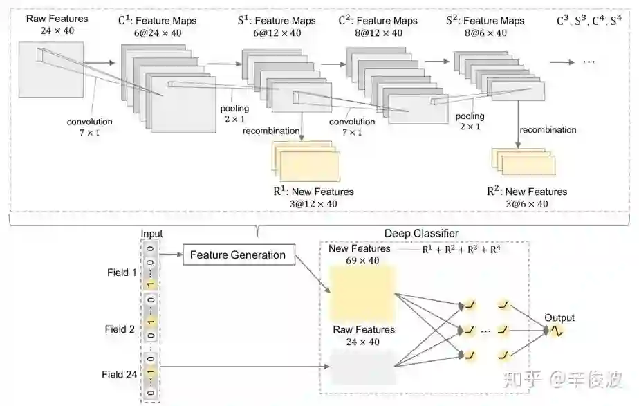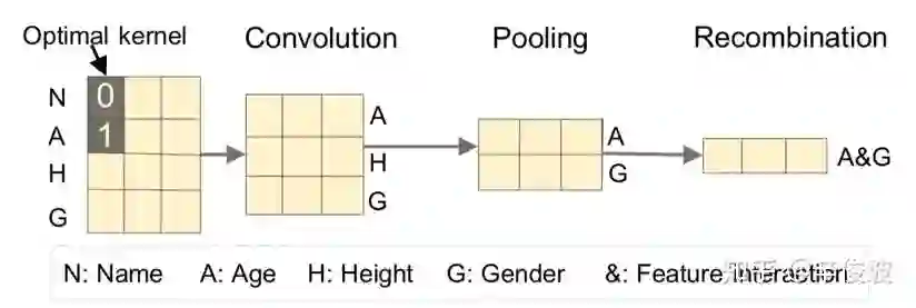 通过使用CNN模块,先是卷积层提取局部特征的连接,如高度等于3能够提取相邻3个field的特征的关系,因此具有高阶特征的交叉能力。然后又通过池化层提取global信息,确保特征的输入顺序对结果的影响能够被捕捉到。