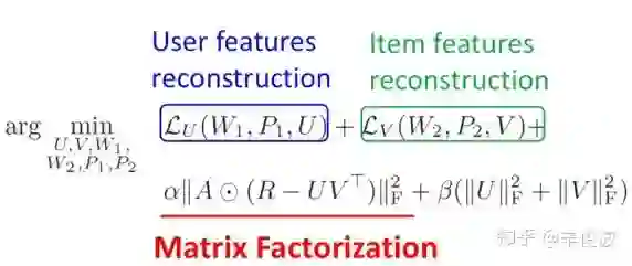 和DMF一样,user用user作用过的item集合表示,item则用itemid本身表示,图中在原slides是说user-autoencoder,但个人在看原始autoRec论文时,这块应该有误,应该是item-based的,因为m表示的是用户数,n表示item数,下方的输入表示所有user(1,2,3,…m)对item i的交互输入