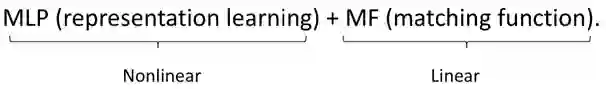 对比普通的CF模型,最大的特点是在representation function中,增加了非线性的MLP,但是由于输入是one-hot的,假设用户规模是100万,MLP的第一层隐层是100,整个网络光user侧的第一层参数将达到1亿,参数空间将变得非常大