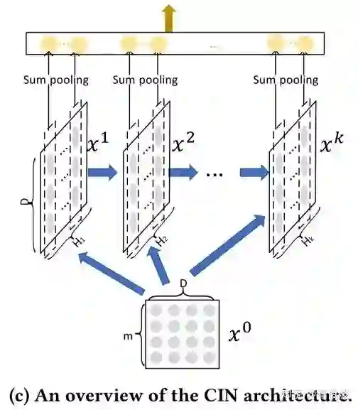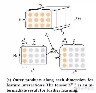 使用CIN模型来提取特征交叉。和DCN模型一样的是,这里也使用了多层的cross,每一层的输入也是由第一层和上一层的输入组成,不同的是,xdeepFM模型的特征交叉是vector wise层级的,而DCN模型是bit-wise的
