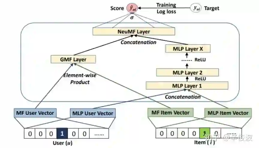 (2)用户u和物品i的向量点积(inner product)得到的value,可以用来代表用户u对物品i的喜好程度,分数越高代表该item推荐给用户的概率就越大