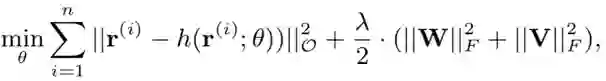 损失函数为最小化预测的平方差以及W和V矩阵的L2正则