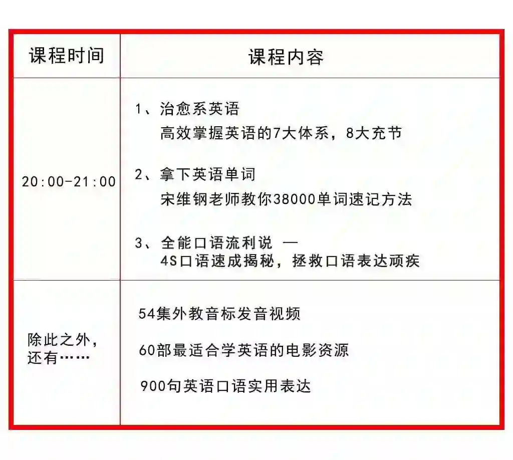 7天英语系统训练营是专门为英语学习者打造,内容涵盖单词、语法、口语等,每晚20:00-21:00准时直播教学!有英语大咖老师们将英语学习精华,为你倾囊相授。
