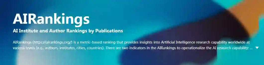 AIRankings 是一份针对院校、作者、城市、国家等不同层次对象的人工智能研究能力的最新排名。