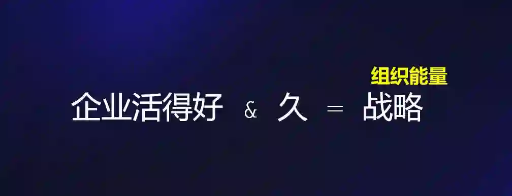我们认为能够做得好和活得久的关键是正确的战略和组织能量。而且组织能量对战略是指数级的关系,希望每个企业都能获得自我成长的动力和动能。