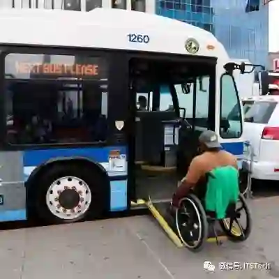 轮椅使用者登上无障碍巴士。