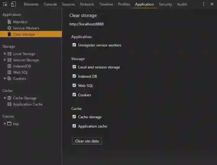 在开发阶段,你应该考虑以Incognito window方式运行应用,因为这样的话,在关闭标签页的时候,缓存文件将不会保留。
