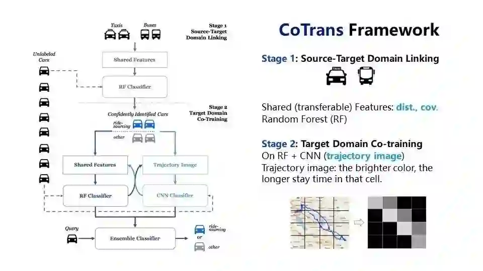 最后一个应用是和上海汽车做的研究,汽车在跑的时候能否根据它的路况分析车到底做什么?是共享还是私用的?我们很荣幸得到了一些数据,在这些数据里面我们可以同时进行两种分析,一种是图像分析,虽然我们本领域没有太多的标注数据,但是可以借用出租车来学习。左边的是同时做两个任务的学习,第一个是根据现在出租车的数据,来帮助我们标注互联网汽车的数据,但是这个当中可能会有错误,所以我们在本领域可以用一些图像分析来矫正这些错误,校正完再拿回来拓展这样的一个样本集。在这两个之间进行多次往返以后,我们就会得到一个很靠谱的模型,最后这样的一个算法我们就可以得到一个很不错的迁移效果。