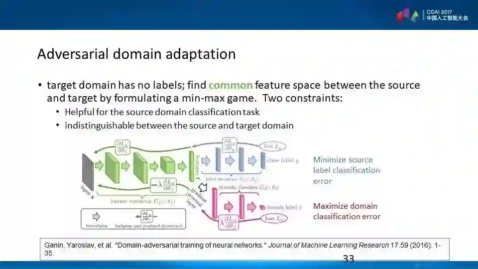 在哪里做迁移的转换、自适应。可以在某个层次来做,也可以在多个层次来做,如何来衡量两个领域之间的距离,可以用鲜艳的这种概率、模型,也可以用联合概率、模型,另外还可以将源领域的信息加进来,建立一个更准确的Loss。这都是图像领域获得的知识,那自然语言会不会有类似的方式呢?