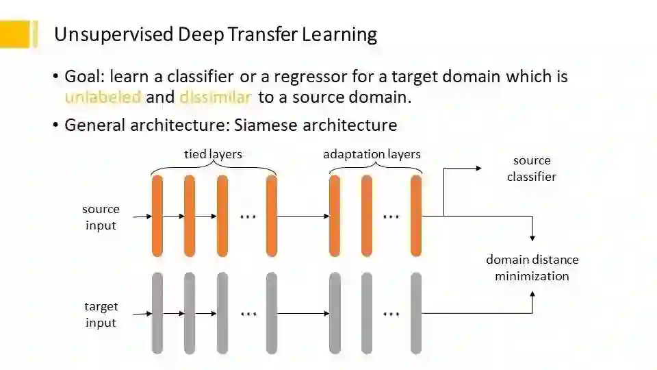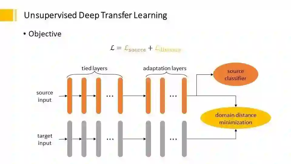 第一个是说我们在两个领域完全都没有标注的,目标和源数据都没有标注,这个时候我们就可以利用刚才的知识把下层固定住,直接迁移。在比较靠上层就可以放开,利用的方法是可以来减少两个领域之间的距离,这个距离虽然我们没有标注,我们还是可以把它衡量出来的,就像用刚才MMD的方法。