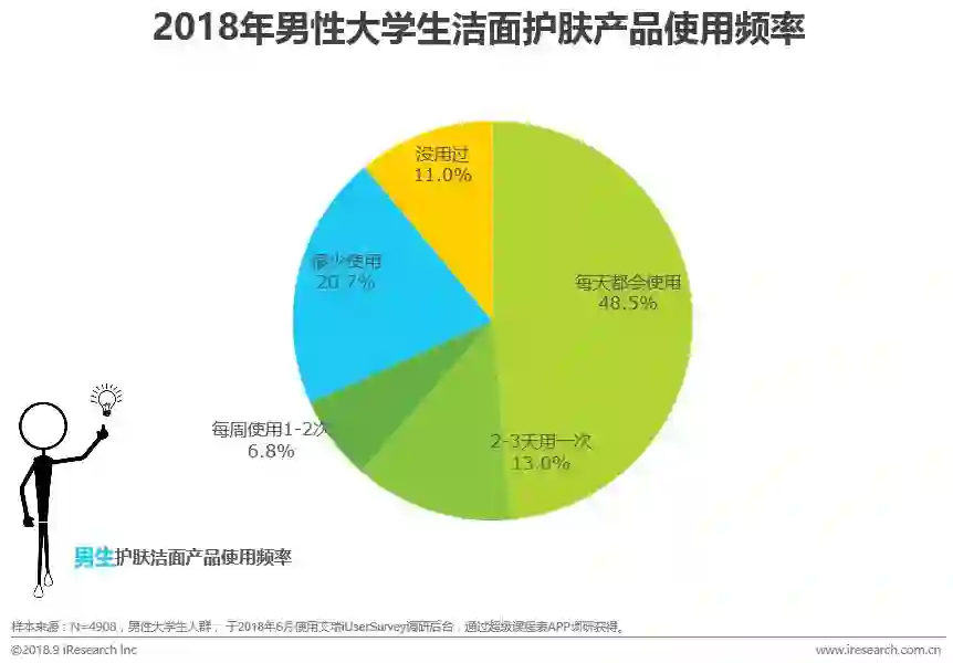 近半数男同学会每天使用护肤产品