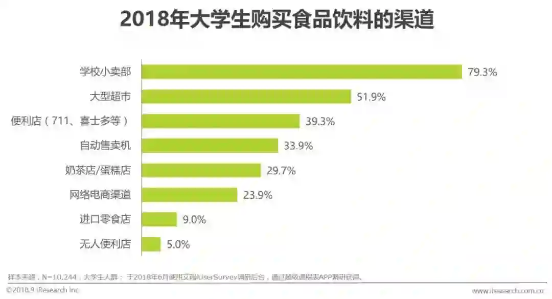 经常用线上支付的比例超过95%;食品饮料就近购买,手机护肤等个人用品网上购买和线下购买比例约为6:4;90%的大学生经常使用淘宝。