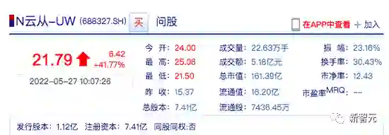 同时,按此次发行价以及发行后7.41亿股的总股本,云从科技在招股书上预测的初始发行市值接近114亿元。而在27日上午10点半左右,按每股价格算,云从科技市值已经超过160亿元。