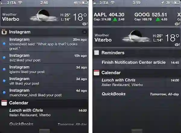 同时苹果还破天荒地加上了小部件,天气和股票的信息可以直接在通知中心里查看了。