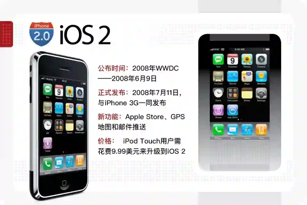 伴随着第二部苹果手机——iPhone 3G的上市,iOS 2也作为迭代版本正式推出了。