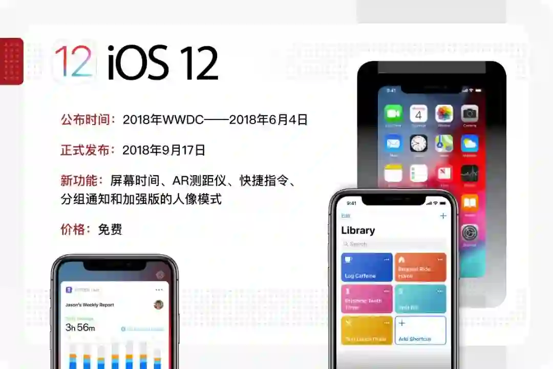 iOS 12中的新功能有屏幕时间、AR测距仪、快捷指令、分组通知和加强版的人像模式等等,一部分新功能带来了不少新鲜感,但在最初的热度过去后便无人问津了。