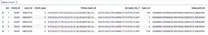为了逼近真实推荐系统场景的数据处理,这里人为构造部分实际生产数据样例作为演示;