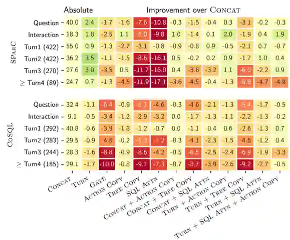 本文以生成 SQL 为例,以一个探索性研究分析了对话式语义解析场景中各种上下文建模方法是否足够有效。文章的分析表明,和最简单的直接拼接上下文相比,已有的上下文建模机制并没有显现出一致更好的效果。细粒度分析的结果同样表明,目前的上下文建模方法对上下文的利用还不够充分。未来,我们计划从细粒度的分析结果入手,研究出更有效的上下文建模方法。