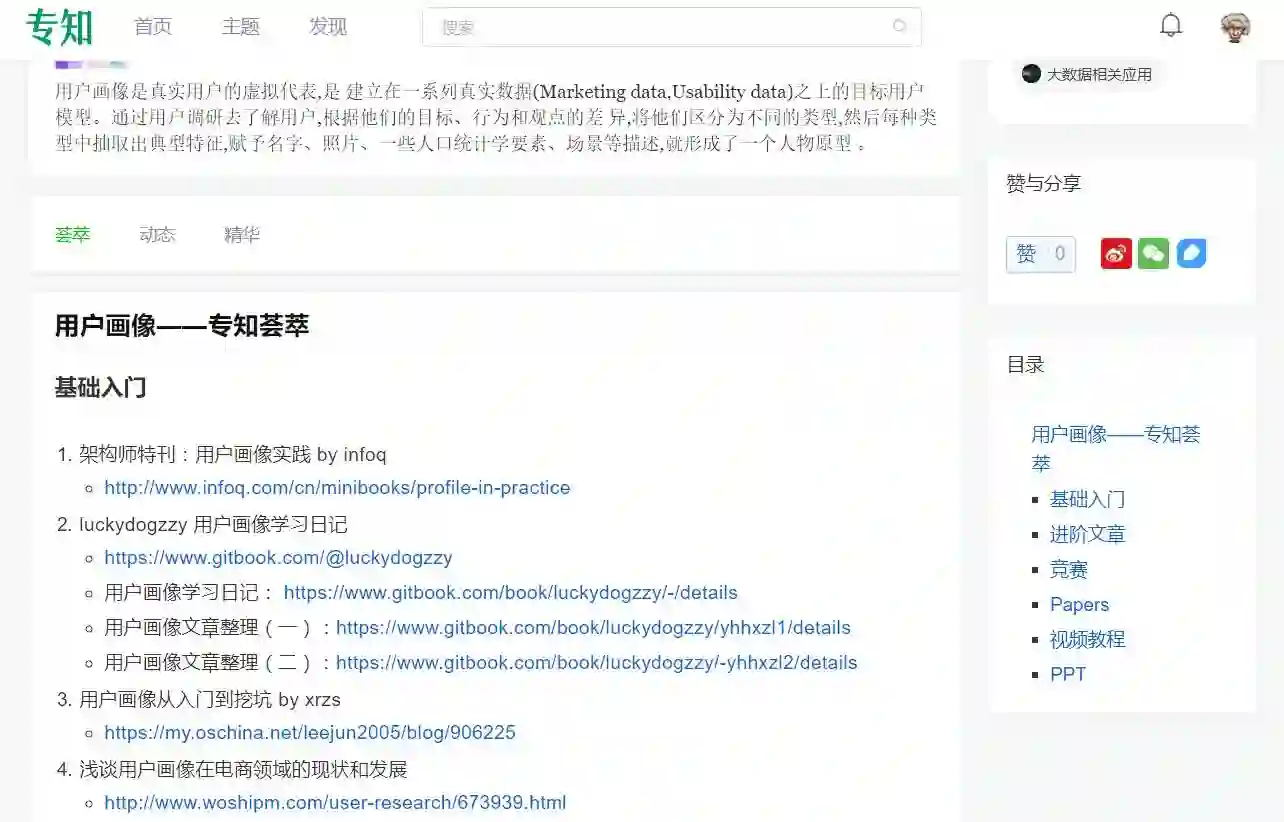 【导读】主题荟萃知识是专知的核心功能之一,为用户提供AI领域系统性的知识学习服务。主题荟萃为用户提供全网关于该主题的精华(Awesome)知识资料收录整理,使得AI从业者便捷学习和解决工作问题!在专知人工智能主题知识树基础上,主题荟萃由专业人工编辑和算法工具辅助协作完成,并保持动态更新!另外欢迎对此创作主题荟萃感兴趣的同学,请加入我们专知AI创作者计划,共创共赢! 今天专知为大家呈送第十三篇专知主题荟萃-用户画像知识资料大全集荟萃 (入门/进阶/竞赛/论文/PPT等),请大家查看!专知访问www.zhuanzhi.ai, 或关注微信公众号后台回复" 专知"进入专知,搜索主题“用户画像”查看。此外,我们也提供该文网页桌面手机端(www.zhuanzhi.ai)完整访问,可直接点击访问收录链接地址,以及pdf版下载链接,请文章末尾查看!此为初始版本,请大家指正补充,欢迎在后台留言!欢迎大家分享转发~