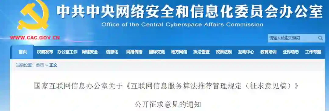 《互联网信息服务算法推荐管理规定》已经2021年11月16日国家互联网信息办公室2021年第20次室务会议审议通过,并经工业和信息化部、公安部、国家市场监督管理总局同意,现予公布,自2022年3月1日起施行。