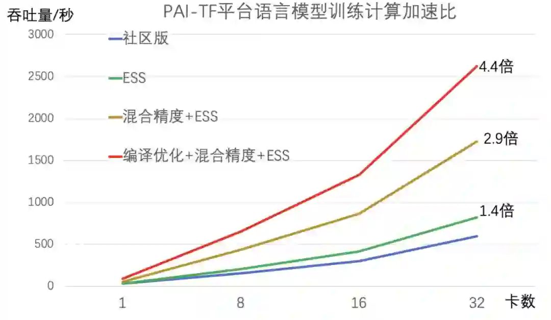 值得一提的是,配合混合精度、编译优化和分布式策略,EasyTransfer 支持的 ALBERT 模型比社区版的 ALBERT 在分布式训练的运算速度上快 4 倍多。