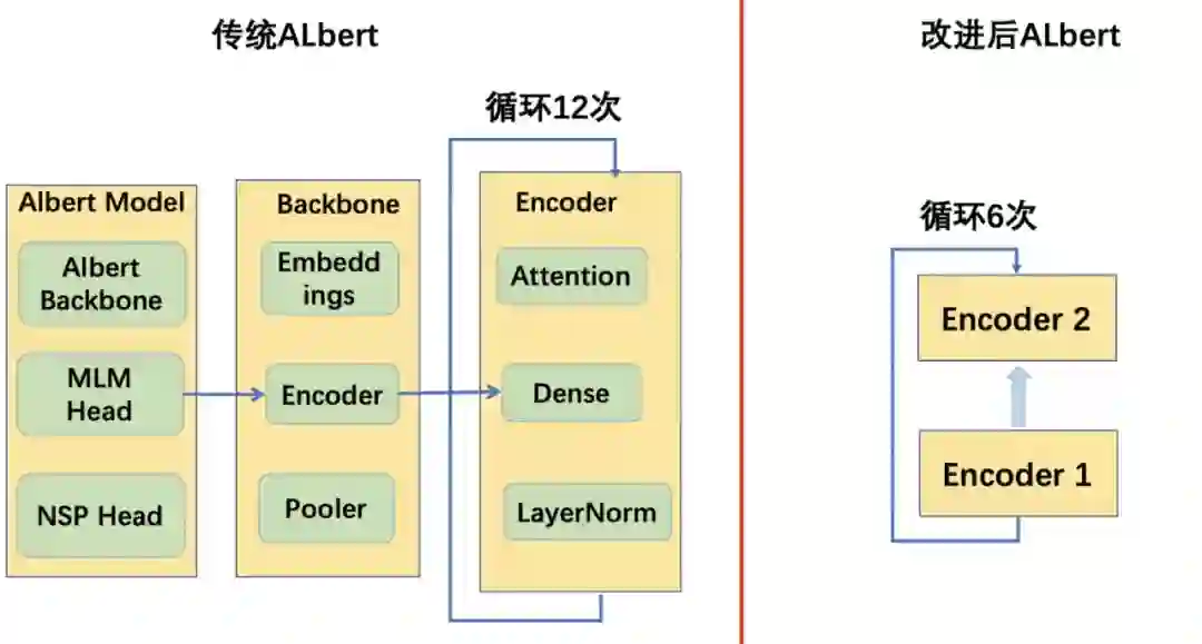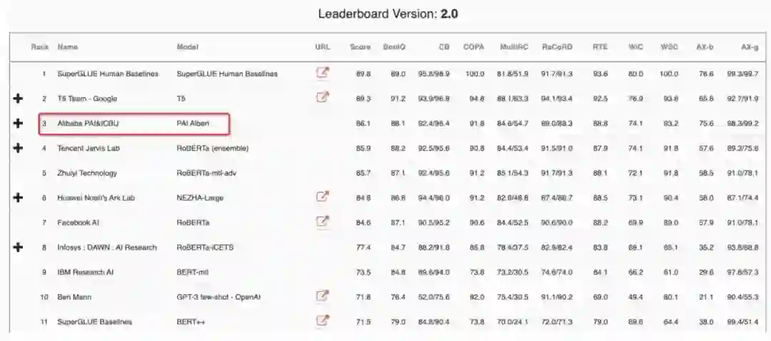 自然语言处理的一大热点工作就是预训练语言模型比方说 BERT,ALBERT 等,这类模型在各大自然语言处理场景都取得了非常不错的效果。为了更好的支持用户使用预训练语言模型,我们在新版的迁移学习框架 EasyTransfer 里植入了一套预训练语言模型的标准范式和预训练语言模型库 ModelZoo。传统 Albert 为了减少参数总量,取消了 bert 的 encoder 堆叠的方式,转而采用 encoder 循环的方式,如下图所示。全循环方式在下游任务上表现并不十分理想,于是我们将全循环改为了在 2 层堆叠的 encoder 上全循环。然后我们基于英文 C4 数据,重新对 Albert xxlarge 进行预训练。在预训练的过程中,我们仅仅使用 MLM loss,配合 Whole Word Masking,基于 EasyTransfer 的 Train on the fly 功能,我们实现了 dynamic online masking,即可以在每次读入原始句子的同时动态生成需要 masking 的 tokens。我们最终的预训练模型 PAI-ALBERT-en-large 在 SuperGLUE 榜单上取得国际第二,国内第一的成绩,模型参数仅仅为第一名 Google T5 的 1/10,效果差距在 3.5% 以内。后续我们会继续优化模型框架,争取以 1/5 的模型参数达到比 T5 更好的效果。