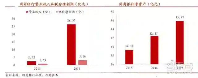 截止到2016年12月底,网商银行为 277 万家小微企业提供了便捷高效的金融服务,累计为用户提供信贷资金超过 879 亿元。2016年网商银行营业收入 26.37 亿元,同比增长942.29%;税后净利润达到 3.16 亿元,同比增长 357.97%。2017 年净资产规模达到 45.87 亿元.