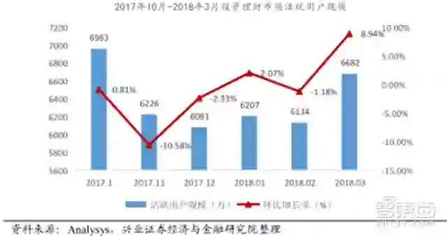 ▲2017年10月-2018年3月投资理财市场活跃用户规模