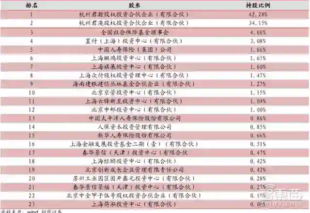 公司目前股东为杭州君瀚和杭州君澳,两者合计控制了蚂蚁金服 76.43%的股权,企业所有人均为阿里集团高管。C轮融资前,蚂蚁金服引入国字号投资机构全国社保、中投海外、中国人寿、中邮资本、建银建信、太平洋保险、人保、新华人寿等资本巨头,合计占据了蚂蚁金服 10.96%的股权。未来 60%的股权为战略投资者持有,40%将作为对全体员工的分享和激励。