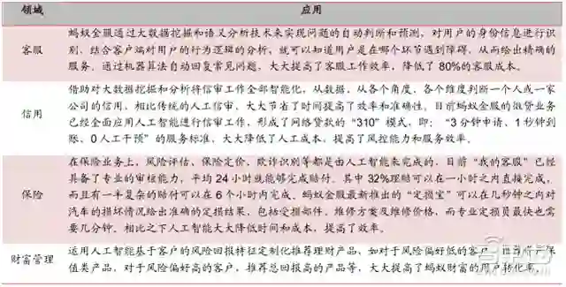 借助大数据,蚂蚁金服的人工智能已经实现了在客服、信用、保险,理财等多领域的运用,大大提高了效率,降低了成本。