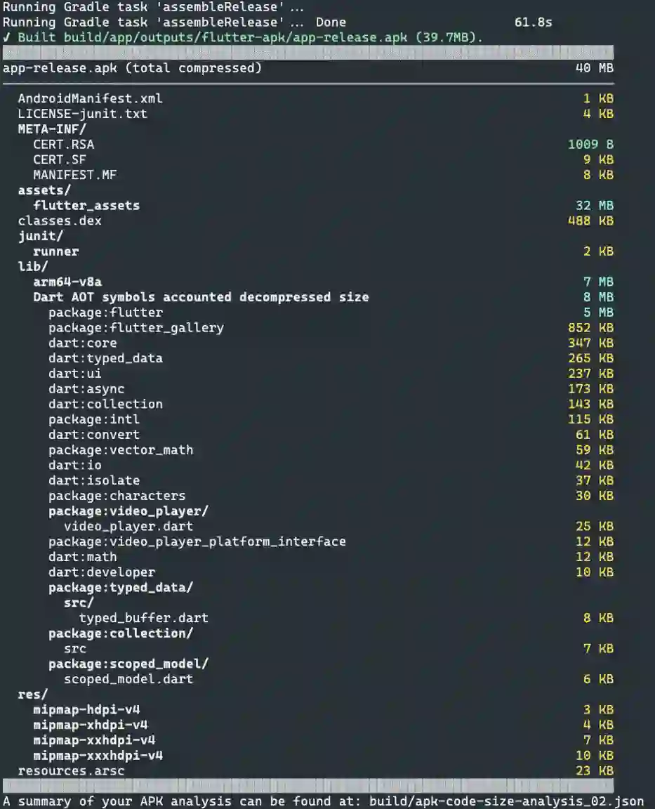 △ Flutter Gallery 发布版本 APK 的细分示例