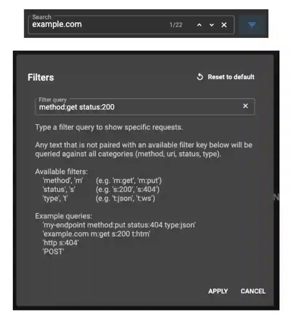 此外,对于网络流量较大的应用,我们提供了搜索和筛选功能。