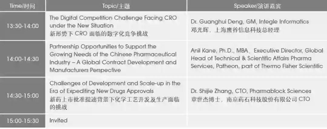 “研发日”会议背景:随着中国企业加快国际化的步伐,合同外包的服务商也需要更加国际化,来符合他们客户的要求。在研发客合同外包论坛,我们邀请来自海内外的 CDMO, CRO 来展示他们的服务,让更多中国药企能找到国际化的合作伙伴 谁将参加会议:将有超过 160 位来自制药企业研发及生产负责人我们将讨论什么:合同外包的国际化、如何找到合适的合作伙伴。