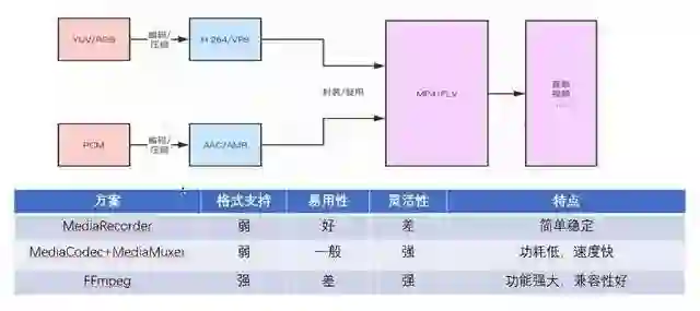 其次,MediaRecorder 也是需要排除的,所以在这里我比较推荐 MediaCodec+MediaMuxer 这种方式。
