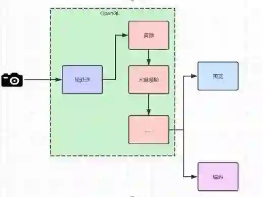 视频录制的大致实现流程是先由 Camera 、 AudioRecord 进行最原始的相机画面以及声音的采集,然后将采集的数据进行滤镜、降噪等前处理,处理完成后由 MediaCodec 进行硬件编码,最后采用 MediaMuxer 生成最终的 MP4 文件。
