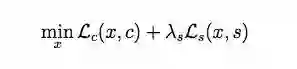 其中Lc(x, c)和Ls(x, s)分别是内容和风格的损失函数,λs是风格损失函数经拉格朗日乘数加权后表示的相对权重。