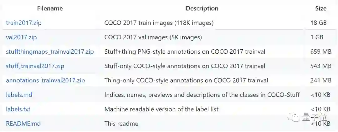 在下载数据集时,记得下载train2017.zip,val2017.zip,stuffthingmaps_trainval2017.zip和annotations_trainval2017.zip。