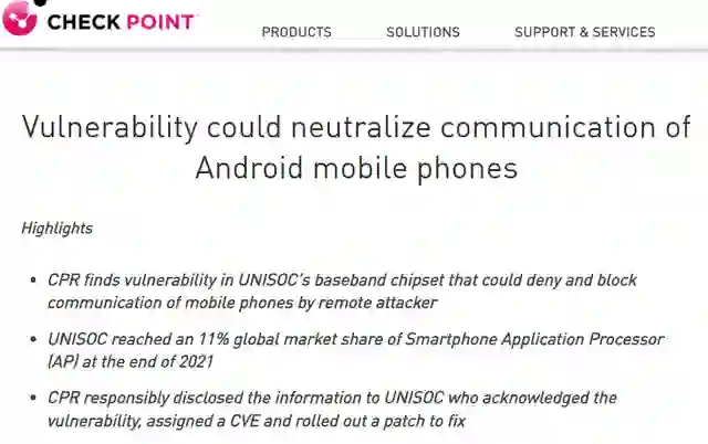 近日,网络安全研究公司 CheckPointResearch 公布了其对紫光展锐芯片组基带处理器中发现的新漏洞。根据相关报告称,紫光展锐芯片组目前存在一个 9.4 级严重网络漏洞,该漏洞会影响作为芯片组一部分并负责网络连接的网络调制解调器,可能允许攻击者发送损坏的网络数据包,并禁用或中断设备的网络连接。