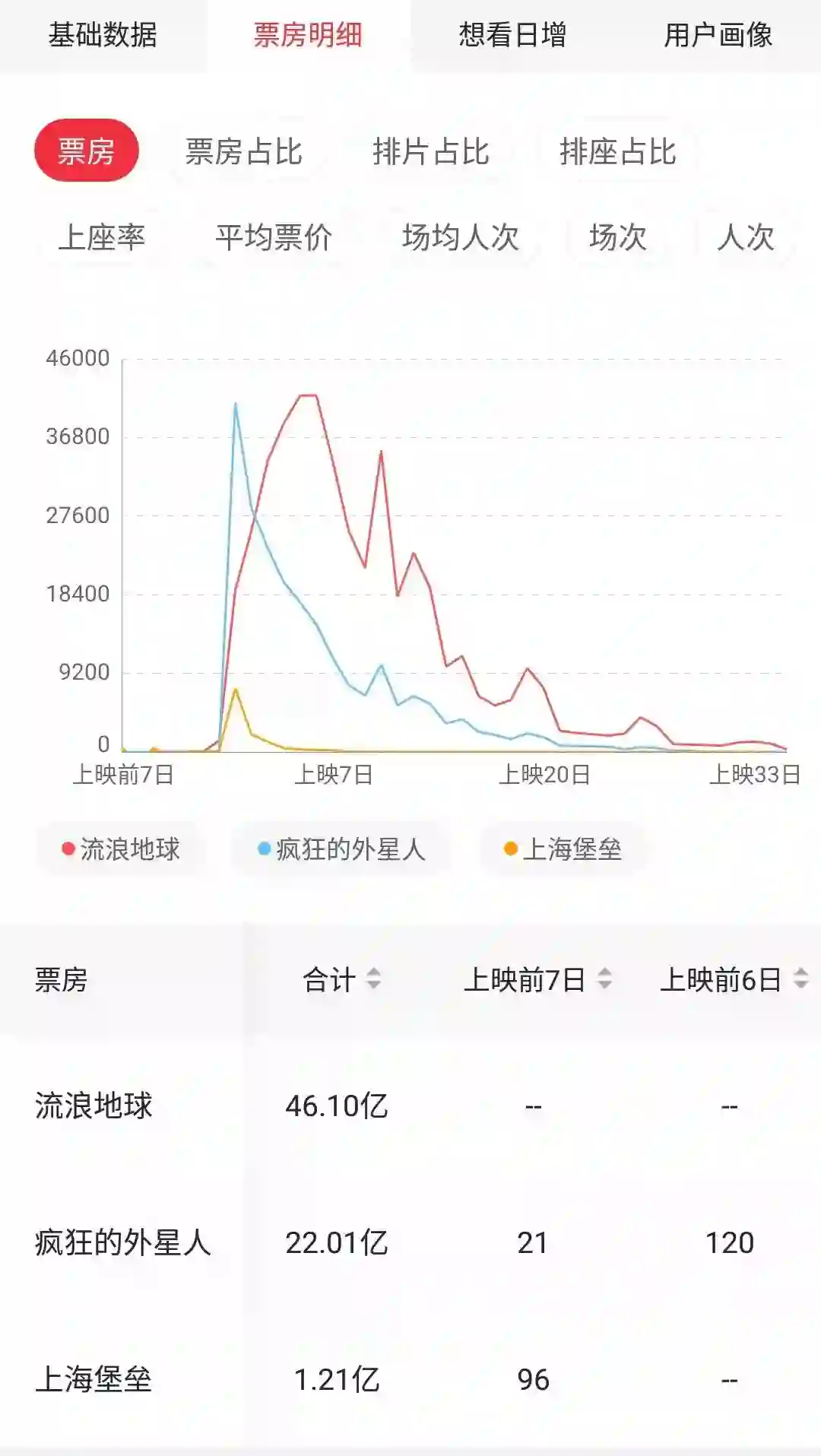 2019年三部国产科幻电影票房对比 图源:猫眼专业版