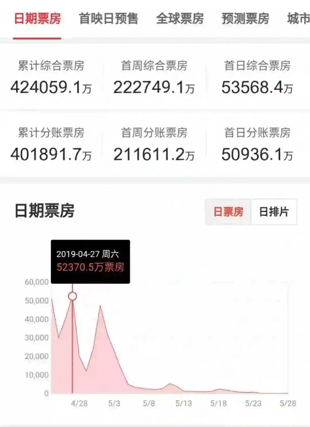 《复仇者联盟4》中国市场票房情况 图源:猫眼专业版