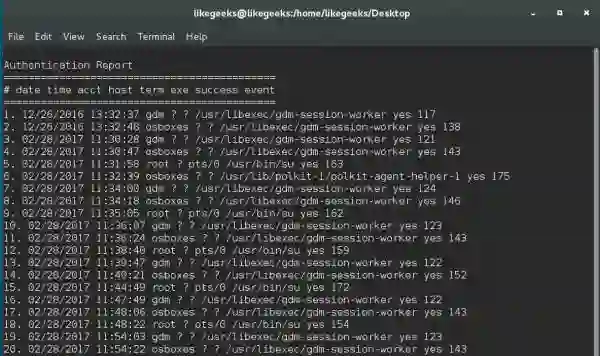 aureport工具被设计为创建一些基于列特征的报告,以显示在审计日志文件中所记录的那些事件。