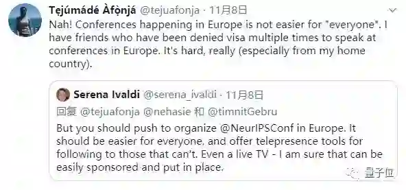 Timnit Gebru说,为了组织这场学术活动,他们异常辛苦的工作,花了那么多的时间组织,花了那么多时间募资……而签证官只需不到1分钟,就能给出一个No。