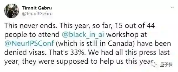 Google的研究学者Timnit Gebru公布了一个数据:截至目前,他邀请了44人前往出席NeurIPS的另一个Workshop(Black in AI),其中15人被加拿大拒签,拒签率三分之一。