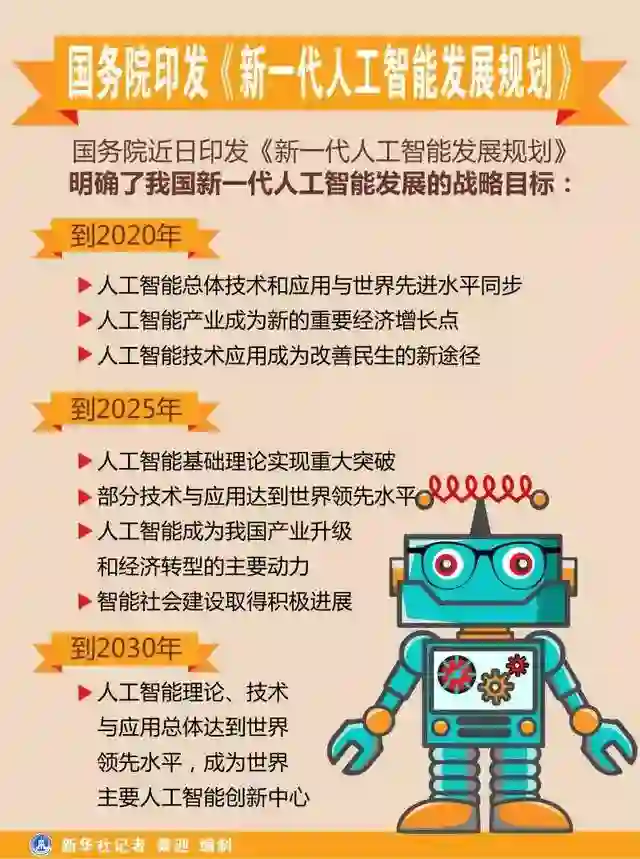 而在2030年,我国要实现人工智能理论、技术与应用总体达到世界领先水平,成为世界主要人工智能创新中心,智能经济、智能社会取得明显成效,跻身创新型国家前列和经济强国。