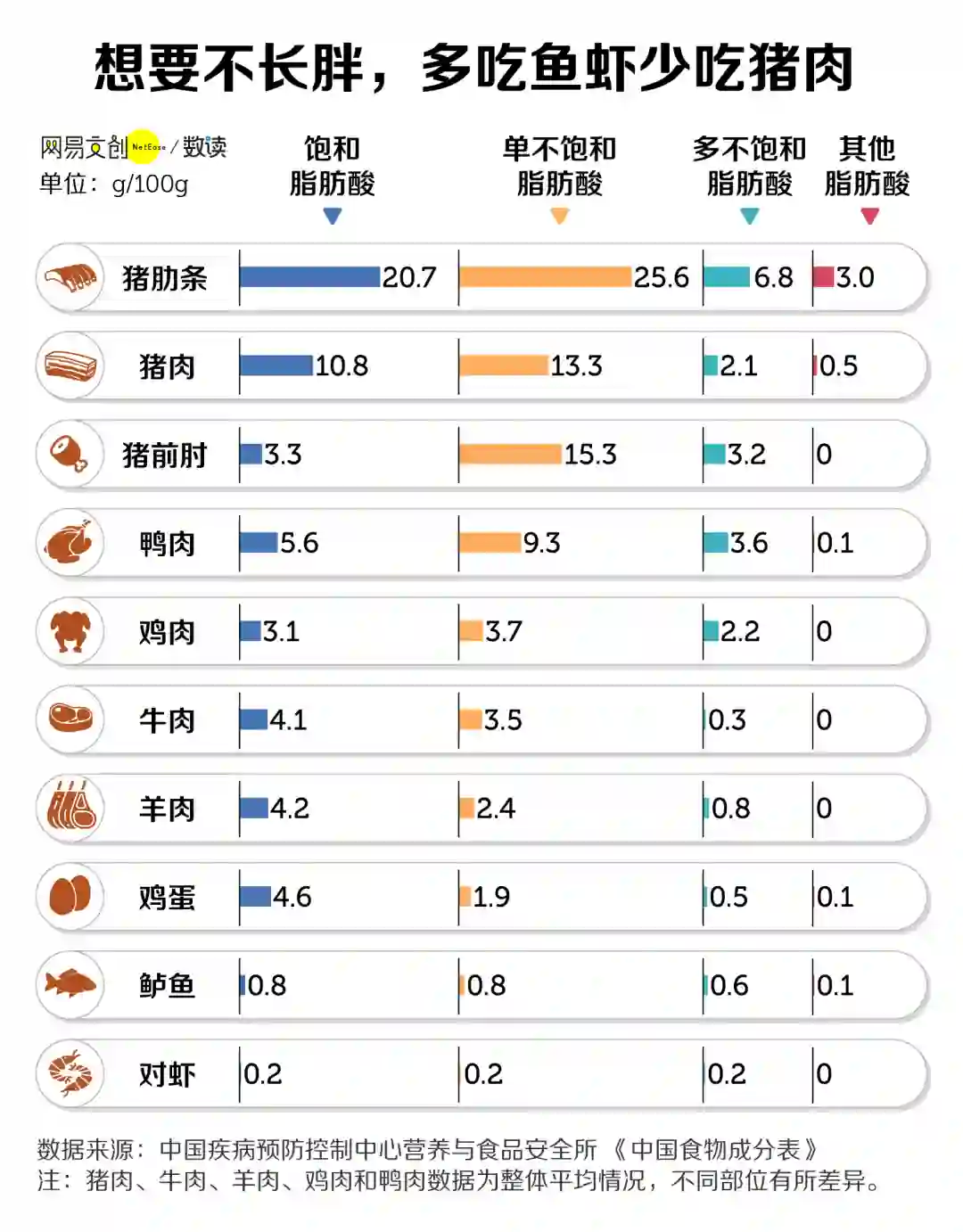相比之下,鱼虾不仅脂肪含量低,还以不饱和脂肪酸为主,对担心吃胖的人来说,更友好。