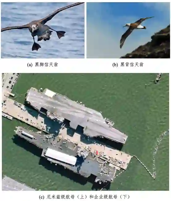 基于有监督式深度学习的图像识别任务中一个方面要求是构建整理大规模、高质量的标注数据,这就对图像质量和标注人员的背景知识有比较高的要求。例如,在细粒度分类任务中,标注人员需要依赖大量的领域知识去区分各种种类的鸟以及不同型号的舰船,如图 1 所示。